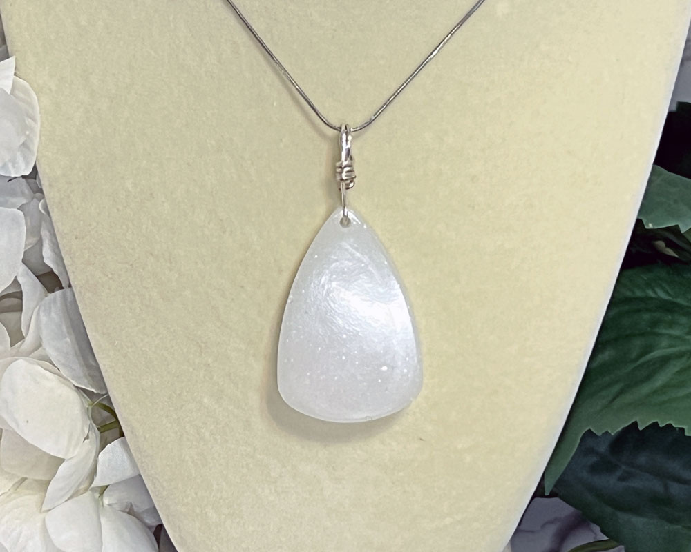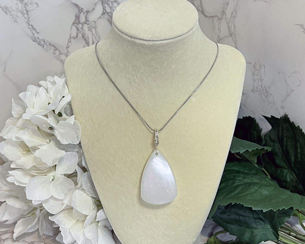 Elevate your energy with the calming, high-vibrational power of Selenite. Handcrafted with intention, this luminous pendant radiates peace, clarity, and spiritual connection. Selenite is known for cleansing energy, clearing stagnant emotions, and creating a protective aura around the wearer. Ideal for meditation, daily wear, or simply reconnecting with your higher self.
